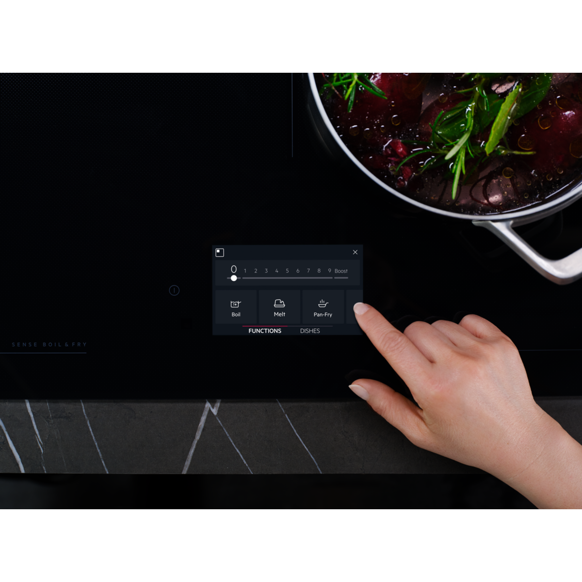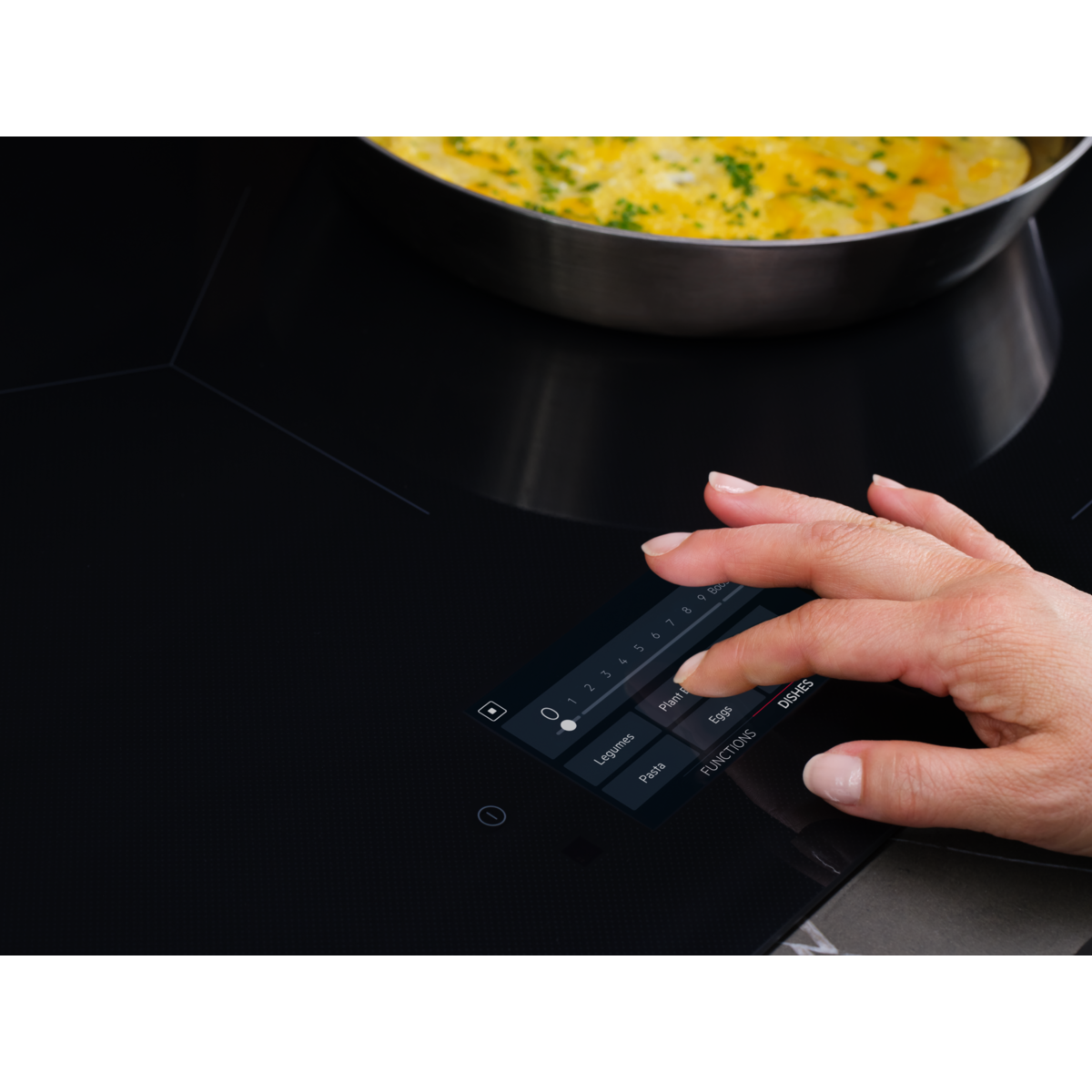 Funktsioonid3-astmeline jääksoojus, helisignaal, booster (võimendi), lapselukk, Flexible Powermanagement, pliidiplaadi-õhupuhasti ühendus, Keep warm, juhtimise lukustamine, sillafunktsioon vasakul ja paremal, sulatamine, paus, potiandur, Precise Heat, SenseCookBoil, SenseCook Fry, heli väljalülitus, Stop Timer, taimer