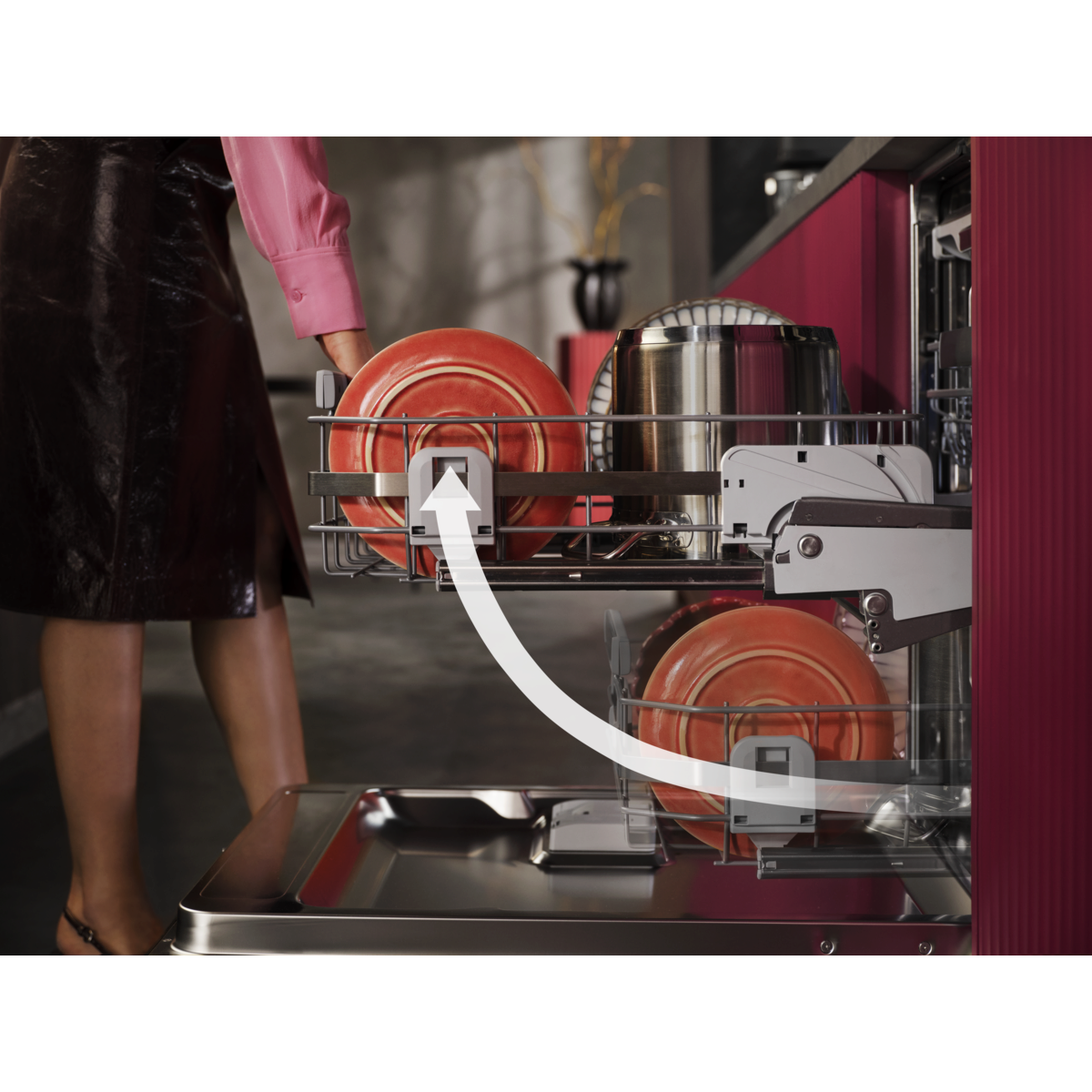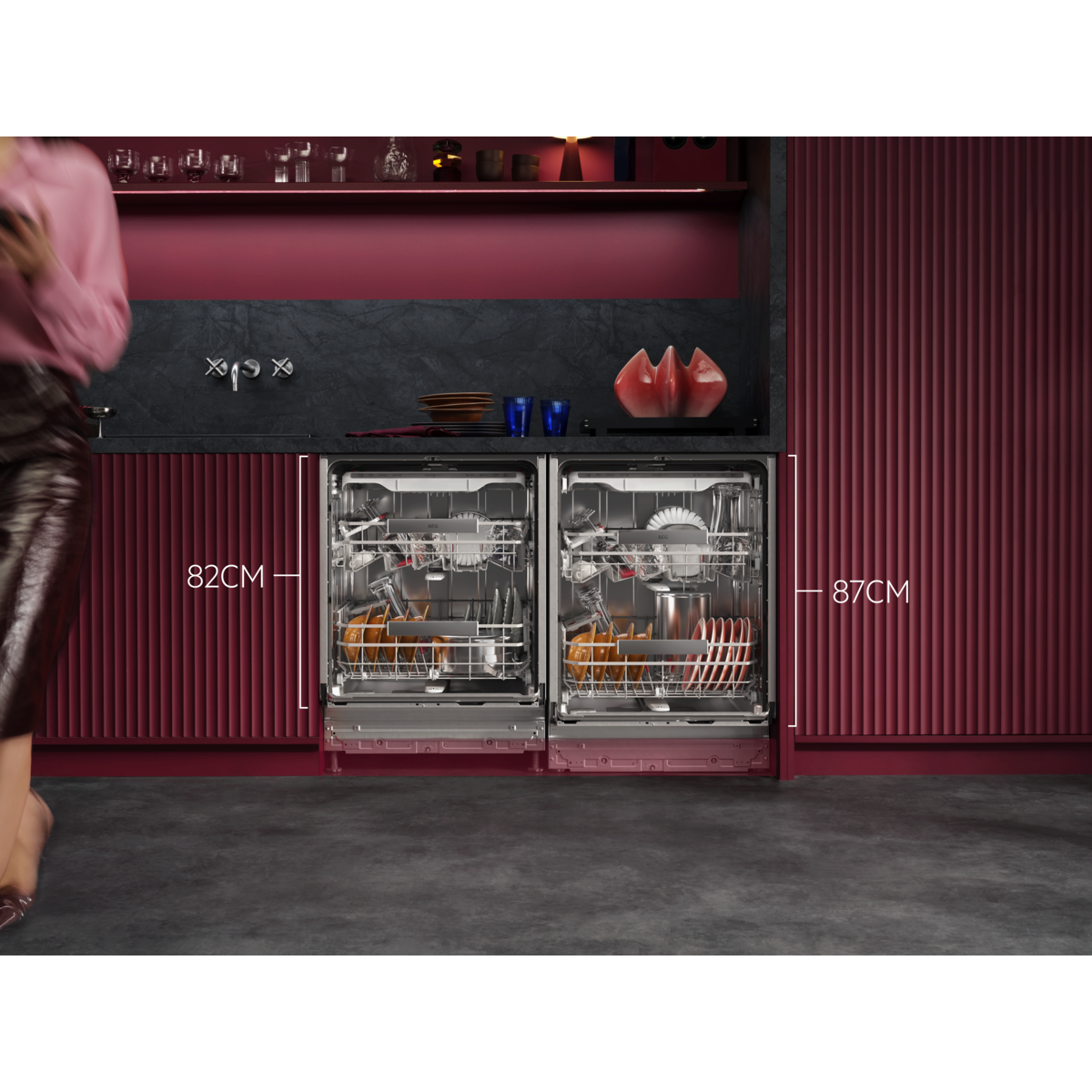 9000 XXL: seest 5 cm kõrgem, kuid sobib tavakõrguses töötasapinna alla. Multifunktsionaalsed korvid klaaside ja kandikute hoidikutega. Võimas puhastus eemaldab kinnikõrbenud toidujäägid. Ülitõhus veesüsteem kasutab kõigest 8,4 liitrit vett.